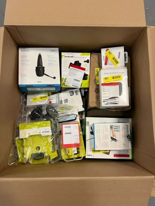 Ce sont des lots d’articles électroniques issus de retours clients Amazon, revendus en dessous du prix de détail à des revendeurs professionnels. Cette boîte de 24 articles est concentrée sur les accessoires smartphone MagSafe et les casques professionnels BlueParrott et Poly.
