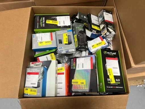 Vous cherchez des ecommerce returns pallets europe electronics avec un contenu orienté accessoires caméra, GoPro et vlogging, accompagné d’un manifeste complet avant l’achat ? Cette box contient 44 articles électroniques issus de retours clients de grands distributeurs, pour une valeur MSRP totale de €2 180,84. Les produits incluent le kit vlogger Sony ACCVC1, le chargeur Sony BCQZ1, la lumière LED Digipower Rainbow 135, la batterie Sony NP-FW50, le GoPro Enduro Dual Battery Charger pour MAX, le trépied GoPro 3-Way 2.0, le stabilisateur vidéo Digipower Phone Video Rig Kit, deux kits accessoires GoPro Insignia 12 pièces, deux GoPro Enduro Dual Charger HERO12/11/10/9, deux kits batterie Sony NP-FW50 Digipower, les hélices carbone DJI Mini 3 et Mini 4 Pro Digipower, la lumière LED Digipower Streamer 112, deux GoPro Protective Housing HERO12/11/10/9, le GoPro Jaws Flex Clamp, une batterie HP DENAQ 6 cellules, le trépied JOBY GorillaPod 1K SMART, trois lecteurs DVD Dell USB Slim, deux kits batterie Canon LP-E17 Digipower, plusieurs chargeurs Digipower Canon et Nikon, trois lecteurs de carte Insignia USB-C CompactFlash, le trépied JOBY TelePod Mobile, le chargeur Rylo, le support vélo/tige GoPro, le kit JOBY HandyPod 2, le trépied Sunpak Multipod 36 pouces, les lecteurs de carte Insignia USB 3.0 et USB-C/USB 3.0, le mini robot culinaire KitchenAid 3,5 tasses et le trépied flexible Sunpak Gripper, tous disponibles depuis un stock européen et expédiés en France et dans toute l’Europe.
