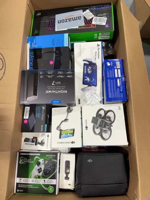 Vous cherchez des electronic liquidation pallets de grande valeur en France ou en Europe ? Cette palette contient 171 articles électroniques issus de retours Amazon avec une valeur de vente conseillée totale de 32 431,50 €. Elle regroupe des marques premium comme DJI, ASUS ROG, MSI, GIGABYTE, TP-Link, NETGEAR, Logitech, Apple, SteelSeries, Honeywell, Schlage, Yale et Kwikset – des références à forte demande sur tous les marchés secondaires européens.